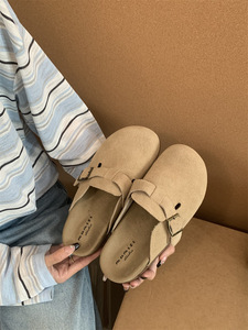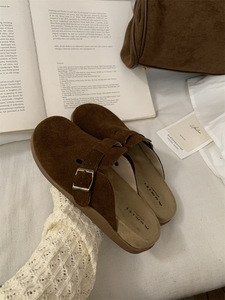牛皮版!厚底软底懒人一脚蹬半拖鞋乐福鞋女鞋夏季皮带扣包头拖鞋