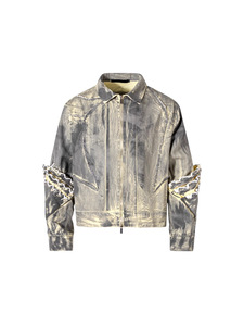 2025秋款美式高街重工手绘牛仔夹克男女复古街头做旧水洗牛仔裤