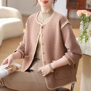 妈妈春装外套洋气高贵小香风上衣中老年女装春秋新款圆领长袖开衫