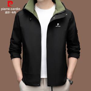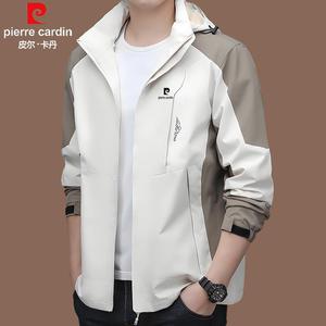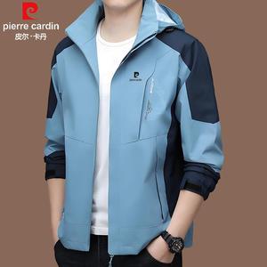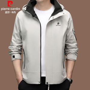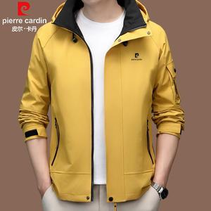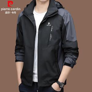 皮尔卡丹冲锋衣夹克男薄款春秋新款中年防风防水可脱卸帽休闲外套
