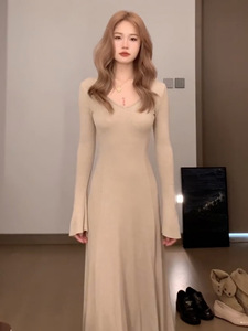 打底内搭针织连衣裙女早秋装2025新款感修身显瘦法式冬季长裙