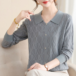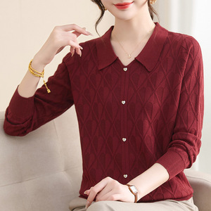 妈妈装秋春季洋气翻领针织衫上衣2025新款中老年女装春秋打底毛衣