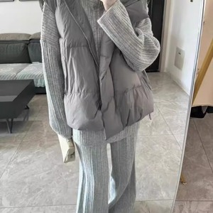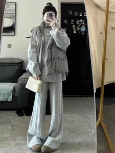 慵懒风冬季穿搭一整套装女棉服保暖马甲高领宽松毛衣阔腿裤三件套