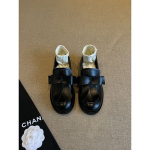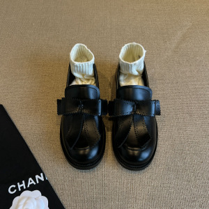 牛皮版~圆头蝴蝶结英伦风乐福鞋一脚蹬复古学院单鞋低跟小皮鞋女