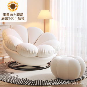 【进口泰迪绒 高弹海绵】居里白+南瓜脚踏(360°旋转底座)