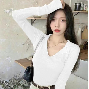 纯欲风翻领设计感长袖针织衫女秋季2025新款修身显瘦内搭打底上衣
