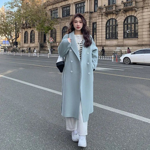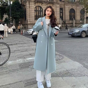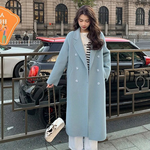 蓝色毛呢外套2025年新款女中长款小个子秋冬季感加厚大衣呢子