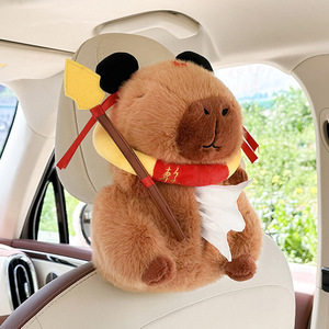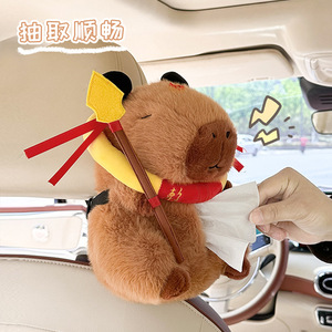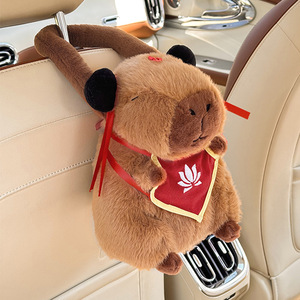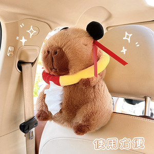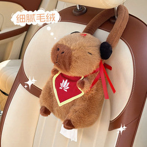 车载纸巾盒毛绒卡皮巴拉公仔车用椅背纸巾袋创意玩偶汽车抽纸盒
