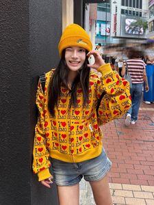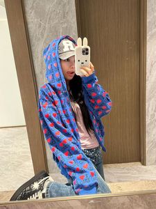 美式复古字母爱心开衫连帽短款卫衣女春秋季2025新款宽松上衣外套