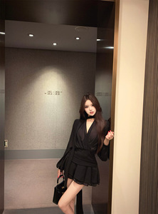 长袖连衣裙纯欲女装法式气质雪纺V领收腰飘带a字短裙巨好看裙子