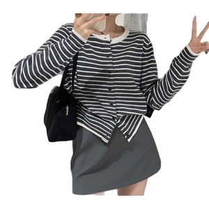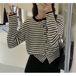 韩系条纹针织开衫春秋气质外套2025新款洋气打底正肩长袖女式毛衣