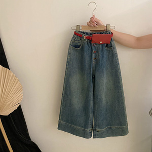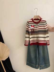 宽松牛仔裤子女童2025秋季新款洋气中大童百搭条纹开衫潮流两件套