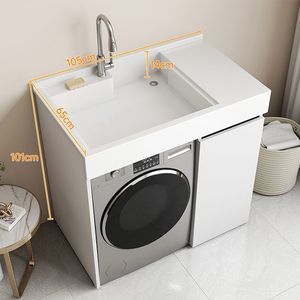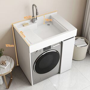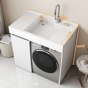 小户型阳台洗衣柜一体机上台盆滚筒洗衣机柜带搓板卫生间浴室柜