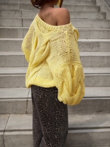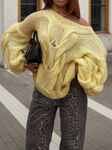 灯笼袖太仙美 镂空麻花套头毛衣慵懒风清新针织衫2025秋季毛衣女