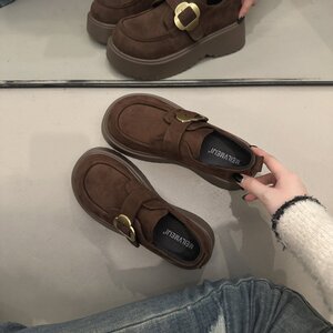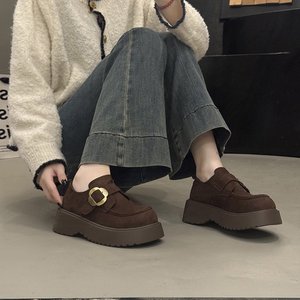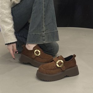 复古松糕厚底乐福单鞋女2025秋季新款全包勃肯鞋魔术贴棕色小皮鞋