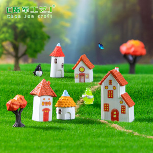 跨境新品创意欧式复古红瓦烟囱小房子 diy装饰品配件微景观小摆件