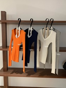 WGWE6853#两件修身长袖针织打底衫+设计感基础百搭挂脖背心套装