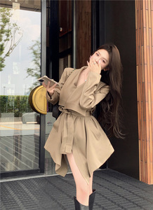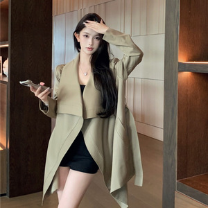 昕可达 赫本风卡其色复古气质显瘦荡领系带风衣女秋季垂坠感外套