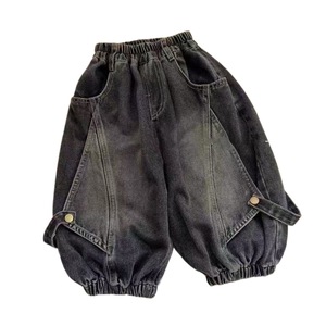 春秋男女童装牛仔裤宝宝洋气儿童个性潮牌韩版时髦网红束脚哈伦裤
