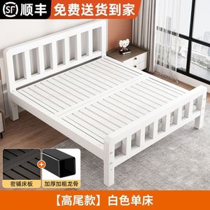 铁艺床双人床家用1.5m单人铁架床不锈钢加固加粗加厚1米2出租房用