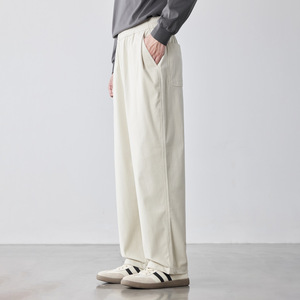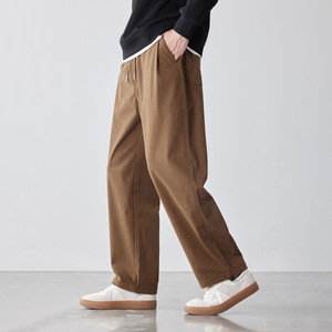 WOOG2005灯芯绒卡其色松紧腰休闲裤男2025春秋季新款潮宽松阔腿裤