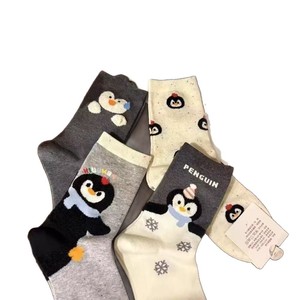 秋冬季软软糯糯企鹅袜子女植绒韩系卡通东大门女中筒立体少女学生