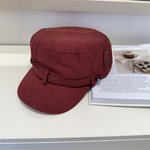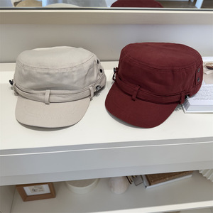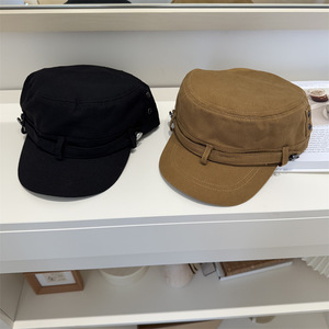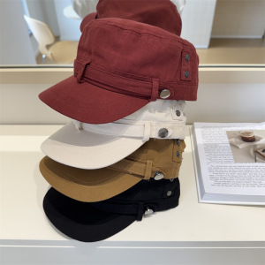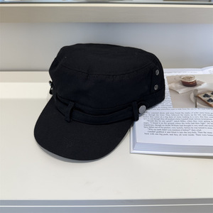 韩系复古做旧水洗平顶帽女夏季高级感休闲百搭显脸小黑色鸭舌帽子