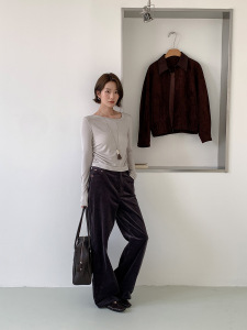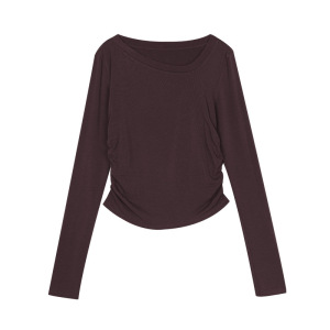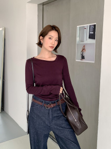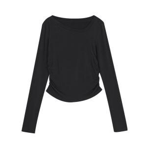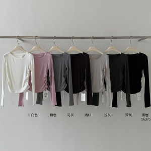木兰氛围感天丝长袖T恤女2025十三行秋新款不对称领针织上衣56375