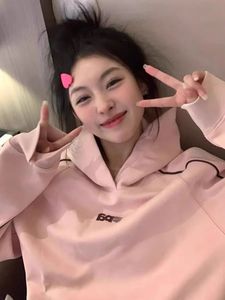 粉色连帽卫衣女春秋季2025新款秋冬chic慵懒美式高街oversize外套