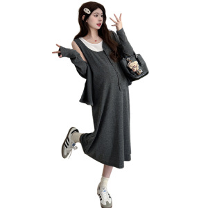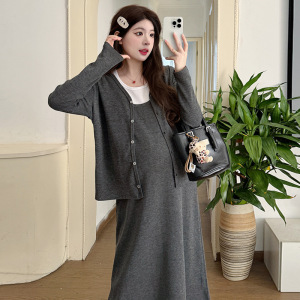 孕妇套装春秋2025新款时尚洋气连衣裙早春孕期慵懒风两件套