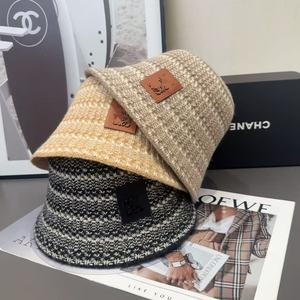 秋冬季撞色条纹渔夫帽时尚潮字母百搭水桶帽保暖防风盆帽针织帽女