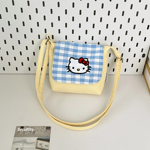 简约清新格子斜挎包包童趣可爱KT猫单肩包日系轻便女童小方包外贸
