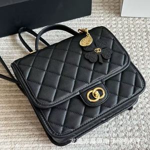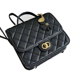 高版25B新款四叶草金币挂件双肩包小背包荔枝纹牛皮手提邮差包女