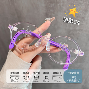 学生儿童近视圆框眼镜框男童女童超轻软硅胶鼻托橡胶腿防滑眼镜架