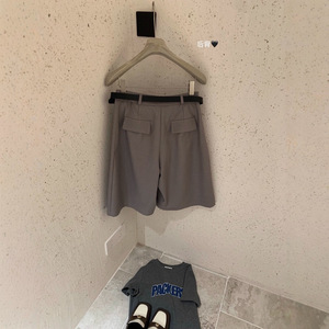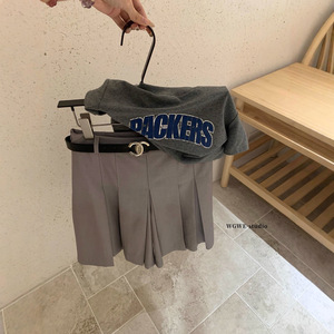 【WGWE】设计感灰色百褶中长款休闲五分中裤裙裤(配腰带) W7027#