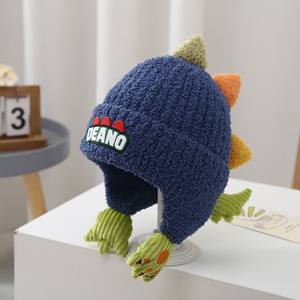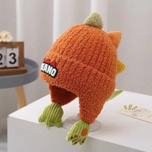 儿童帽子秋冬季护耳针织帽加厚宝宝套头帽恐龙男童女童保暖毛线帽
