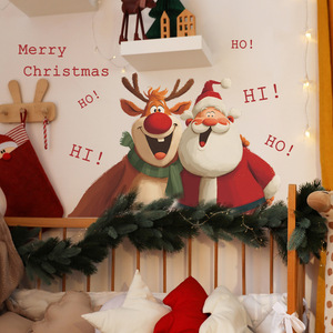 fun-b188搞怪圣诞老人和麋鹿家居节日氛围装饰墙贴画外贸批发自粘