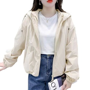 连帽短款纯色小个子冲锋衣外套女春秋宽松休闲夹克双拉链潮流上衣