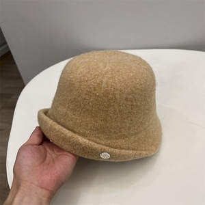 日系秋冬新款羊绒针织翘檐渔夫帽女士法式赫本风保暖加厚盆帽子潮