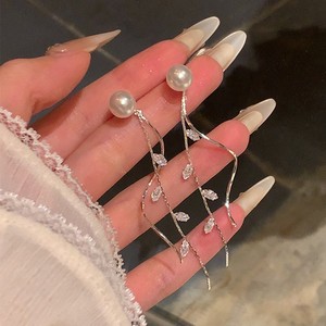 韩系闪锆~树叶珍珠流苏耳环女2025年新款轻奢高级感气质耳钉耳饰