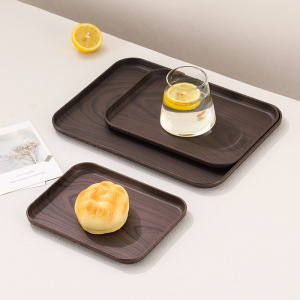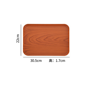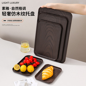 跨境新品长方形家用塑料托盘高颜值酒店客厅仿木纹盘子餐盘面包店