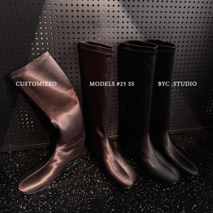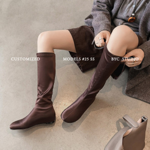 时髦漫画腿~法式真丝圆头内增高弹力袜靴包腿瘦瘦靴黑色长筒靴女