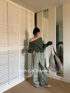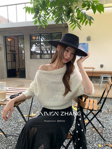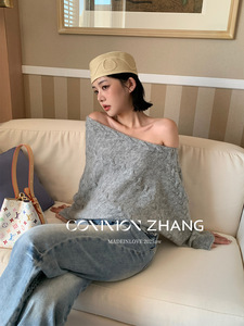 CZ ZHANG秋设计感斜肩领长袖针织衫女慵懒风宽松休闲毛衣B35031