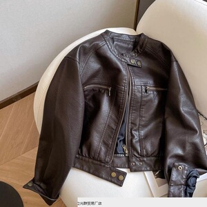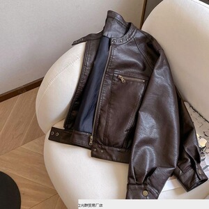 皮衣外套港风复古新款机车短款小个子皮夹克宽松夹克新款工厂代发