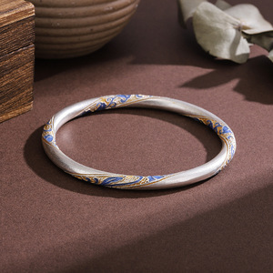 白铜镀银手镯兰袂描金珐琅彩蓝粉莲花闭口手镯古风时尚百搭情侣款
