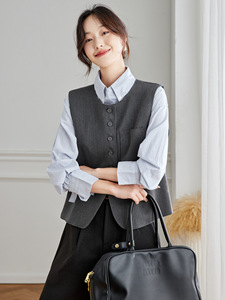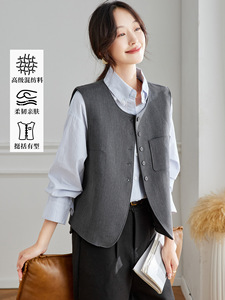 棉茧 圆领高级灰马甲女2025秋装新款无袖坎肩背心叠穿马甲开衫