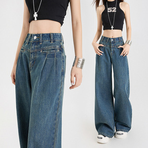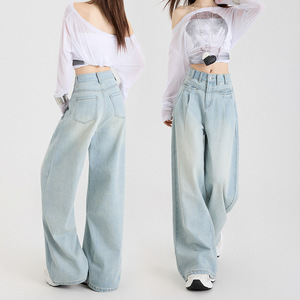 厂家直销白色褶皱牛仔裤女夏季2025新款慵懒垂感宽松直筒阔腿裤子