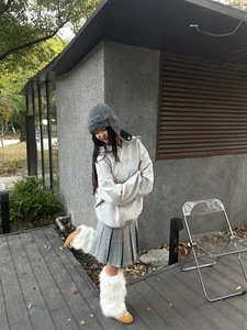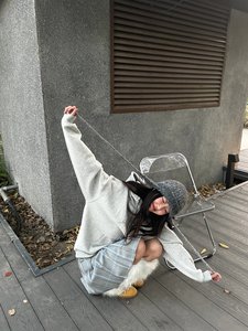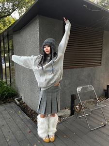 韩系街头拽酷女~复古标语字母印花休闲宽松连帽卫衣