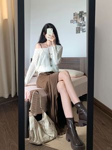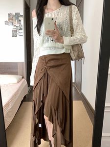 美拉德穿搭套装女早秋高级感针织罩衫不规则抽绳吊带连衣裙两件套