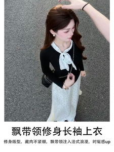 黑色miu系千金风高级感长袖上衣女巨好看设计感小众韩系通勤穿搭